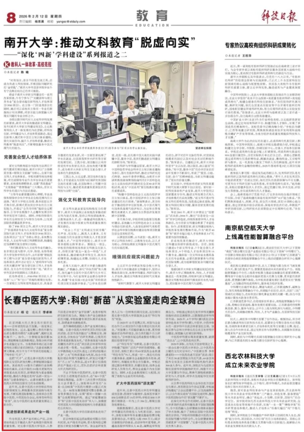 2月12日,《科技日报》报道我校近年来积极开展科技创新工作,培育杏林科创“新苗”,助力中医药行业高质量发展迈上新台阶。