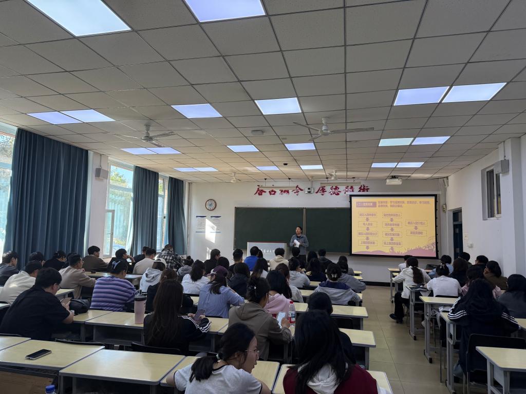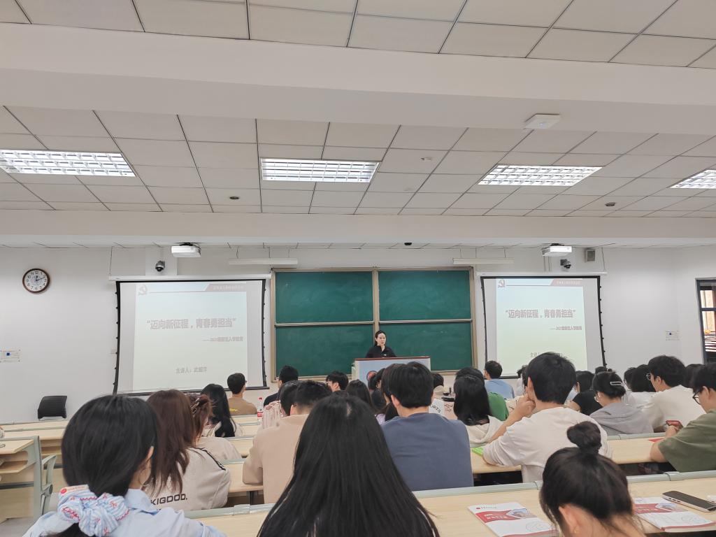 学院党委组织员武媚洋以“迈向新征程,青春勇担当”为题讲授专题党课,带领新生重温党的百年奋斗历程,紧扣新时代青年使命,系统解析入党流程并细致讲解入党申请书与思想汇报的规范撰写方式,勉励新生将个人理想融入民族复兴伟业,以实际行动向党组织靠拢。